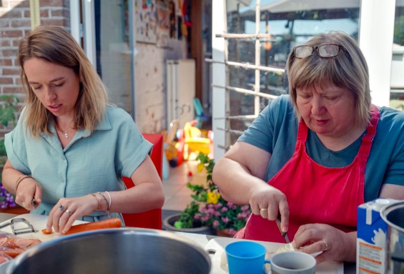 Van Diksmuide gaat het naar Waasmunster. Nadat àlle brooddozen zijn gevuld - goed voor drie broden - en alle 15 kinderen naar school zijn vertrokken, schuift Stephanie mee aan de ontbijttafel bij Marianne (56) en Walter (64). Het koppel heeft vier biologische kinderen en heel wat pleegkinderen. Als pleegouders maken de twee geen enkel onderscheid tussen hun pleegkinderen en hun eigen kinderen. 'Ook al komen ze uit een ander gezin, hier is iedereen broer en zus van elkaar. Hoeveel kinderen we al hebben opgevangen? We zijn de tel kwijt', lacht Marianne. 'De voorbije 27 jaar hebben hier zo’n 50 à 60 kinderen een warme thuis gevonden. Sommigen wonen hier drie, vier of vijf jaar en anderen amper veertien dagen. De deur staat hier altijd open. Ooit komt er een dag dat ze weggaan. Je weet dat op voorhand natuurlijk, want eigenlijk ben je interimouder. Dat loslaten is één van de moeilijkste dingen, maar dat telt voor elke ouder.'