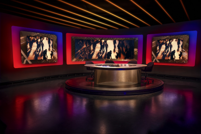 Christophe Janssens, Creative Director VRT NWS: 'Dankzij de grote ledwand kunnen we met sterk beeld en grafische elementen onze verhalen nog beter ondersteunen, en dat waar je maar wil in de studio. We kunnen in de toekomst nog sneller nieuwe vertelvormen introduceren dankzij flexibele decorelementen en de daarbij passende invulling van de ledwand.'